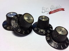 In the late 50's Gibson was using Kluson tuners for their guitars. Kluson was a small factory located in Chicago. Their tuners were an industry standard at that time. "Kluson Deluxe" in vertical lines was stamped on the ribbed metal cover and there was a lubrication hole instead of the letter "o". Until mid-1960, the tuners knobs had a single ring around them.